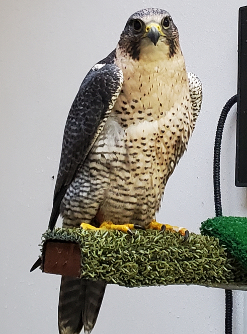 Sable is a Gyrfalcon/Peregrine Falcon hybrid. She hatched in 2008 under human care near Spokane, Washington, and trained as a falconry bird. Sable flew for 14 seasons, successfully hunting hundreds of quarries. Now retired, she has found a home at the Alaska Raptor Center to be cared for (and adored!) in her golden years. Sable is a resilient and high-spirited bird, with a lot to teach us about falcons and falconry.